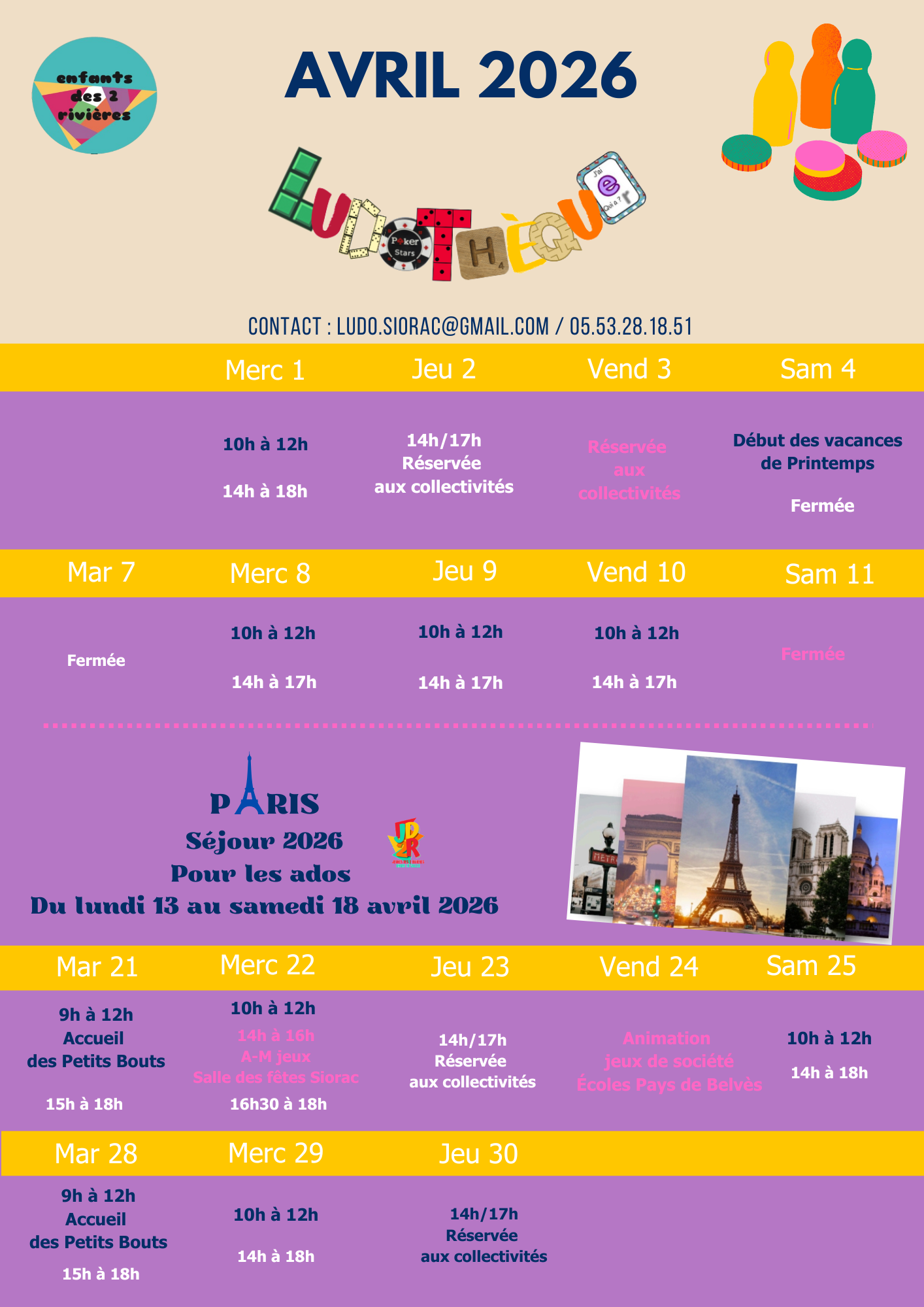 Veuillez trouver ci-dessous le planning des mois d'Avril 2026.